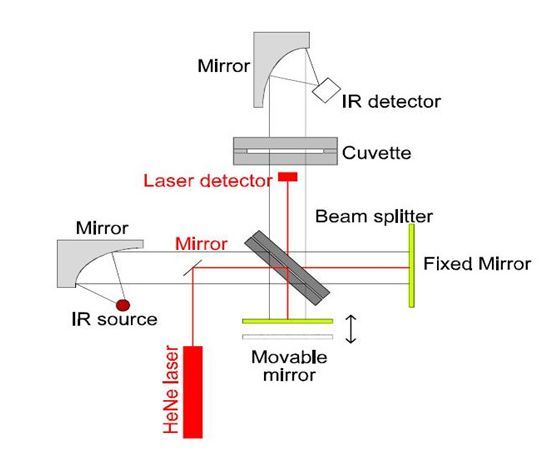傅里葉變換紅外光譜儀目前在紅外光譜儀中占有主導地位。傅里葉變換紅外光譜儀的核心部件是邁克爾遜干涉儀。
