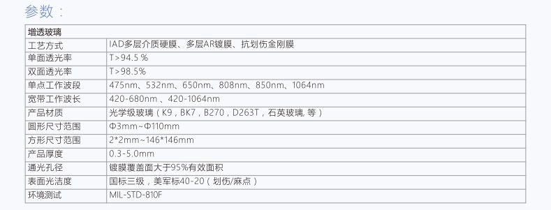 為了保護(hù)鏡頭免受風(fēng)吹雨打等環(huán)境影響,雙面增透玻璃是最佳的選擇,激埃特公司生產(chǎn)的BBAR增透玻璃具有大尺寸優(yōu)勢(shì),根據(jù)客戶喜好設(shè)計(jì)出抗劃傷且反光有質(zhì)感的墨綠色,經(jīng)典藍(lán)色,淡紅色等增透玻璃,結(jié)合激光波長(zhǎng)和傳感器應(yīng)用波段,可單波長(zhǎng)增透也可寬波段增透,380nm-1100nm近乎完美的全光譜增透是給光學(xué)儀器保護(hù)面板,安防日夜監(jiān)控?cái)z像機(jī)提供低損耗高清的視覺(jué)效果。防摔、防震、防指紋、防霧、防眩光、經(jīng)球?qū)嶒?yàn)后水滴小110度,具有超滑、超硬、超透光功能是激埃特BBAR增透玻璃最基本的功能。