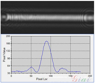 具有窄入射光束方向,光束的長軸平行于鮑威爾透鏡屋頂并用產(chǎn)生小的聚焦深度的薄激光線。具有寬入射光束方向,光束的長軸垂直于鮑威爾棱鏡屋頂和帶產(chǎn)生大的焦點深度厚激光線。在上面的圖形發(fā)散風(fēng)扇被截斷靠近鏡頭。對于每一種情況下,光束被聚焦到CCD陣列在500毫米工作距離。下面清楚的圖像顯示光束形狀/方向上的線寬的影響。