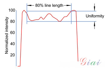 高斯激光束通過普通的柱面透鏡時,會產(chǎn)生不均勻分布的直線,而鮑威爾棱鏡的頂部是復(fù)雜的二維非球面曲面,激光通過時會產(chǎn)生大量球面像差,重新分配光路,減少中心區(qū)域的光,增加邊緣的光,形成一條均勻的直線,適用于各種生物醫(yī)學(xué)、汽車裝配、食品加工等機(jī)器視覺應(yīng)用。