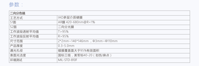 激埃特二向分色鏡具有高穿透率,波長(zhǎng)定位準(zhǔn)確,光能量損耗小等優(yōu)點(diǎn)。