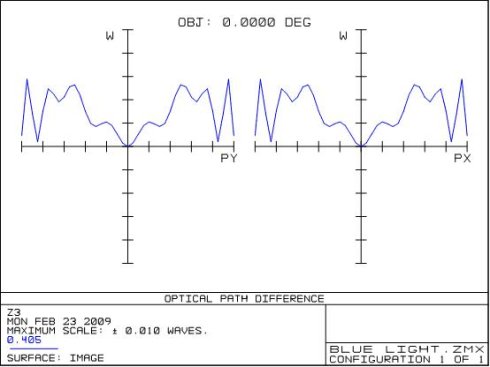 一、性能指標 光學總長:4.07mm NA:0.8 入瞳直徑:4mm 結(jié)構(gòu):1G1P OPD:<0.01waves